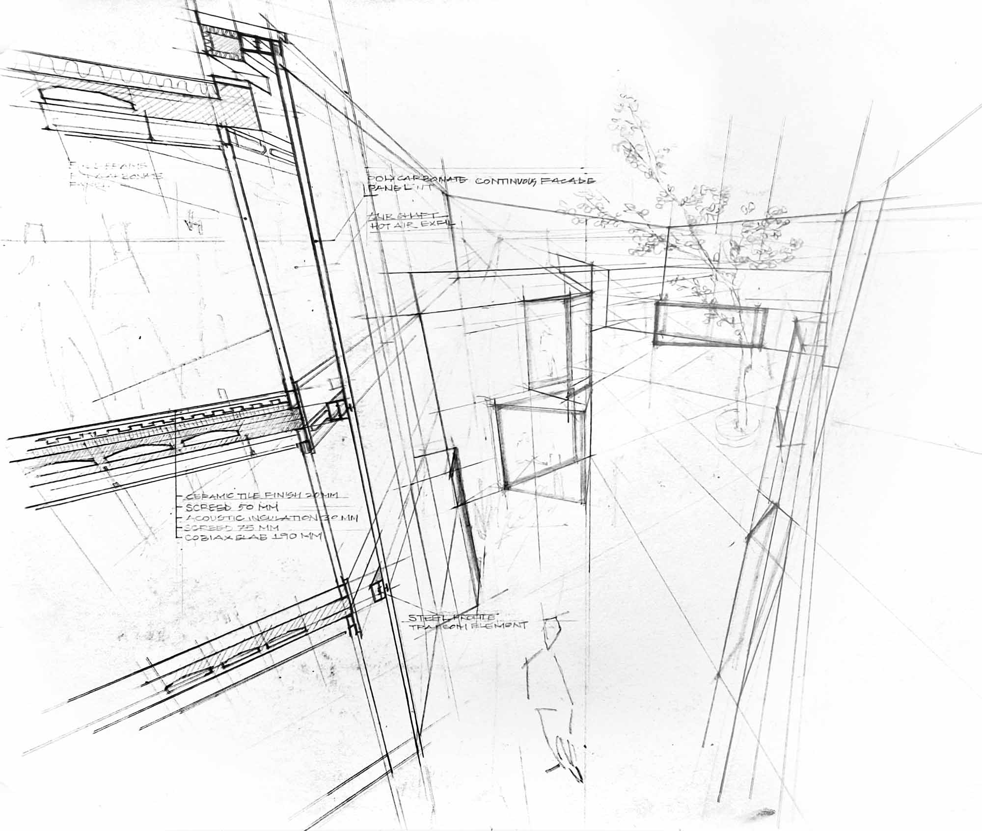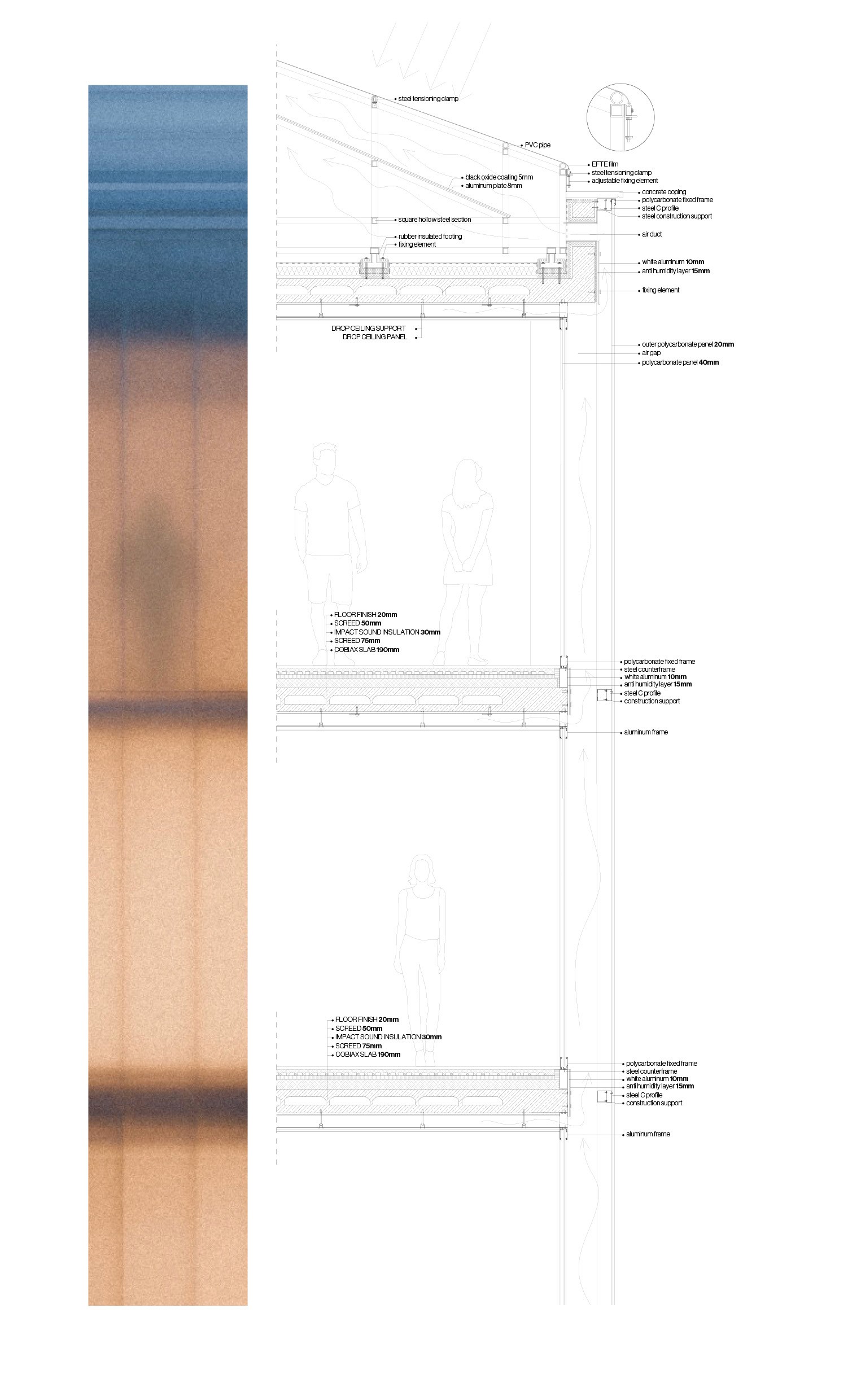Gaussian splatting, photogrammetry & datamoshing with video codecs were analysed to understand what a computer's "peripheral vision" could look like. These digital effects were then extrapolated to architectural techniques: using materials such as glass bricks, polycarbonate, perforated aluminium to physically manifest this selective downscaling of visual information.