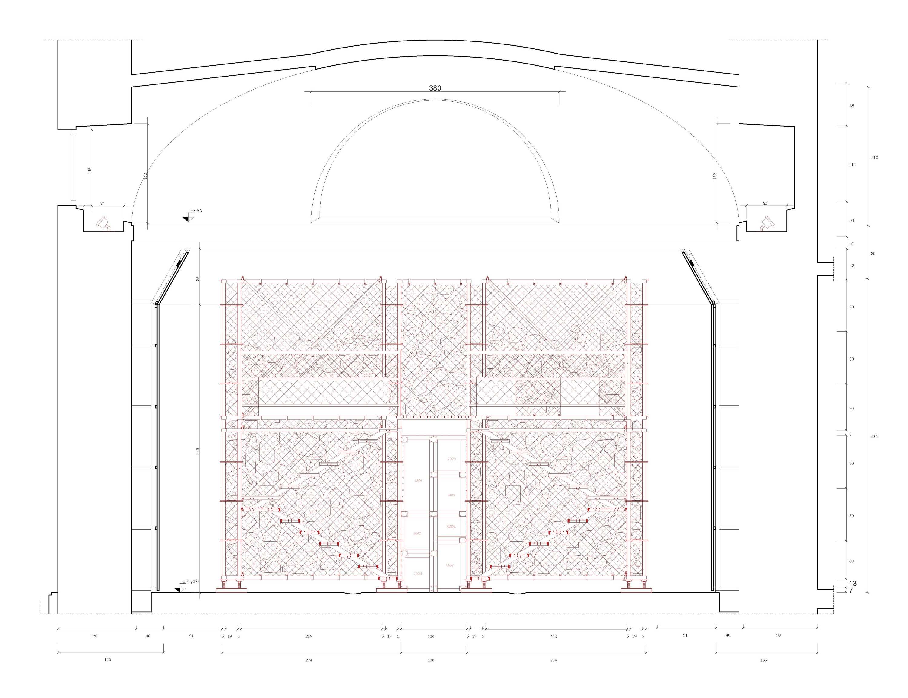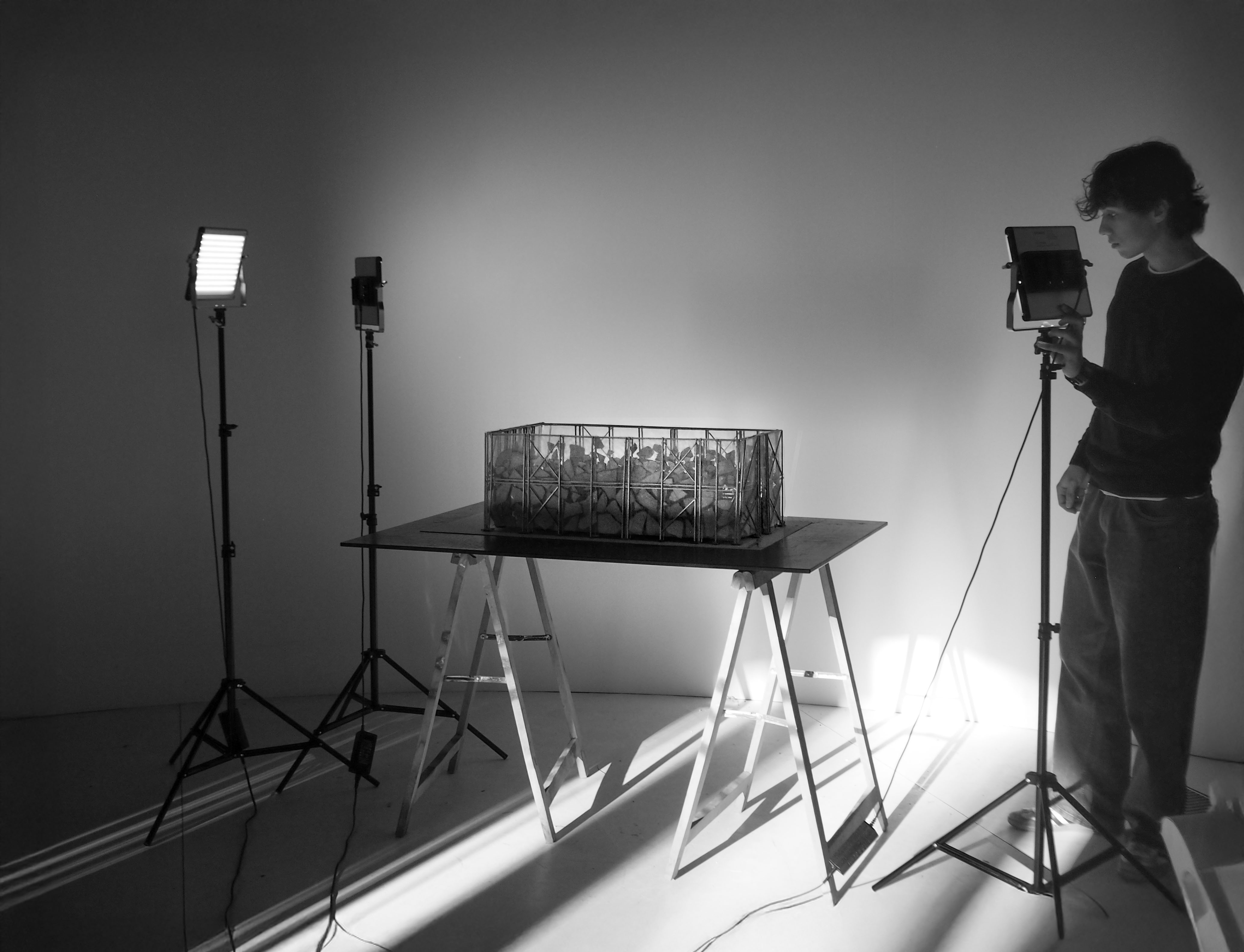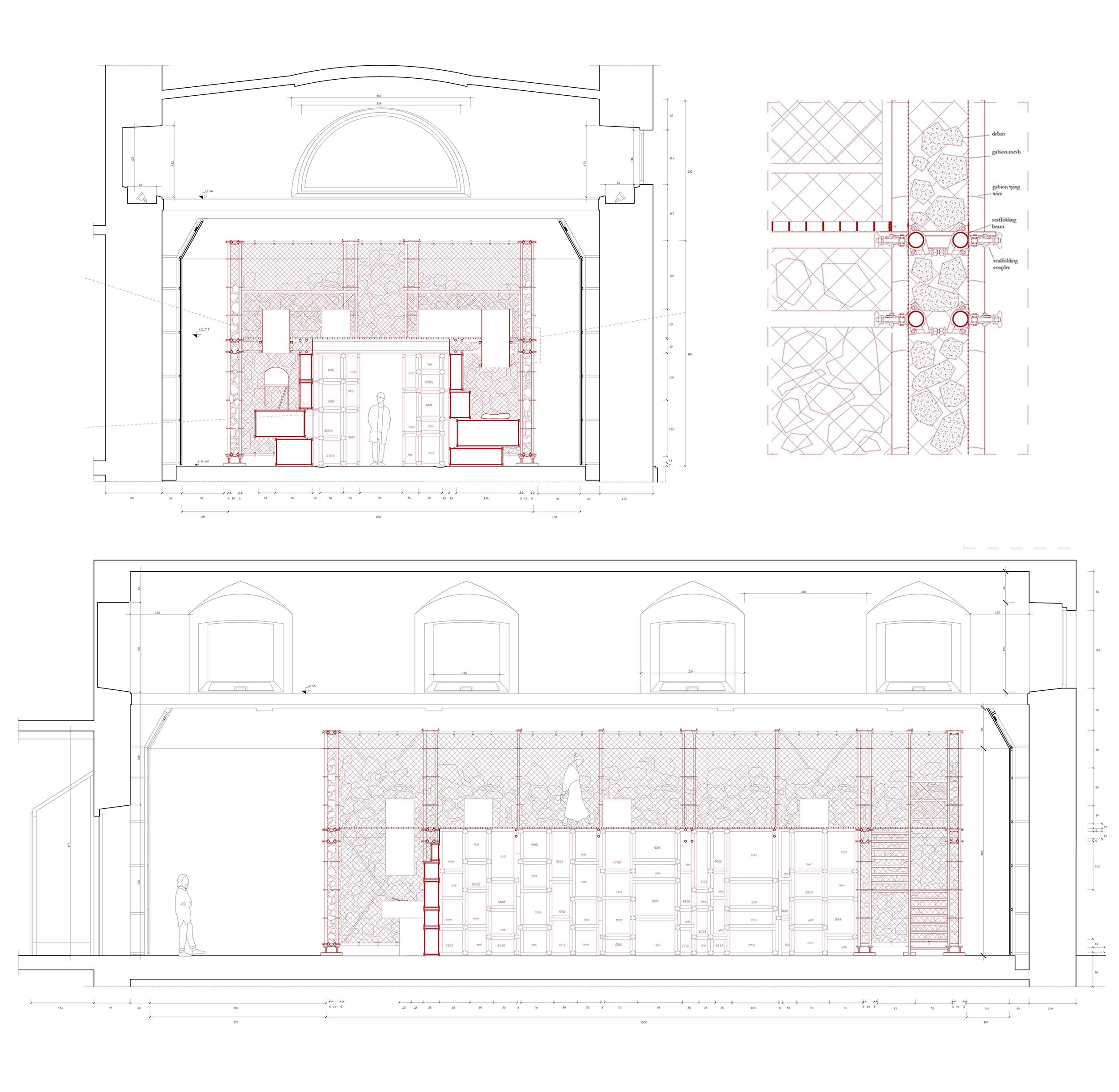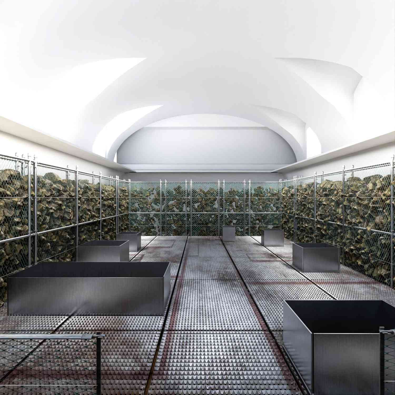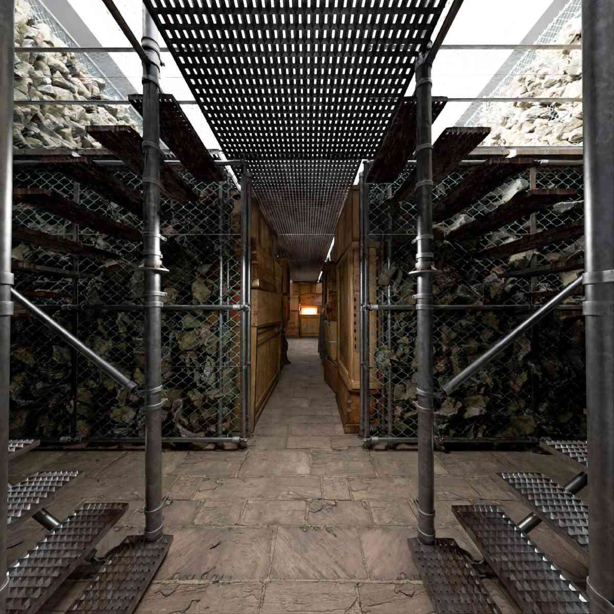 Designed as a temporary insertion in the Villa Panza Gallery, this exhibition explores how the violent destruction of buildings alters the value of the objects within. The exhibition reassembles debris from various natural disasters & warzones within five-meter-high walls of scaffolding and steel-wire-mesh.
